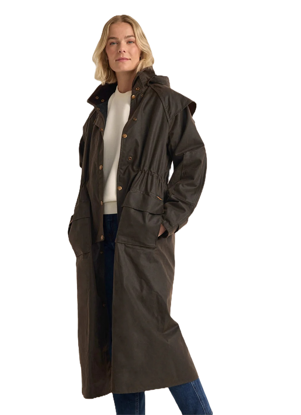 Driza-Bone jackets trace their origins back to the late 1800s, when a Scottish sailor named Edward Le Roy began waterproofing old ship sails with oil and wax to create durable rainwear. After moving to Australasia, his designs were refined and improved, eventually catching the attention of Australian stockmen who adapted the coat for life on horseback with features like the fantail, leg straps, and long sleeves. Over time, this rugged oilskin riding coat became known as the Driza-Bone—famous for keeping its wearer “dry as a bone”—and today the brand continues to blend its heritage with modern, practical outdoor style.